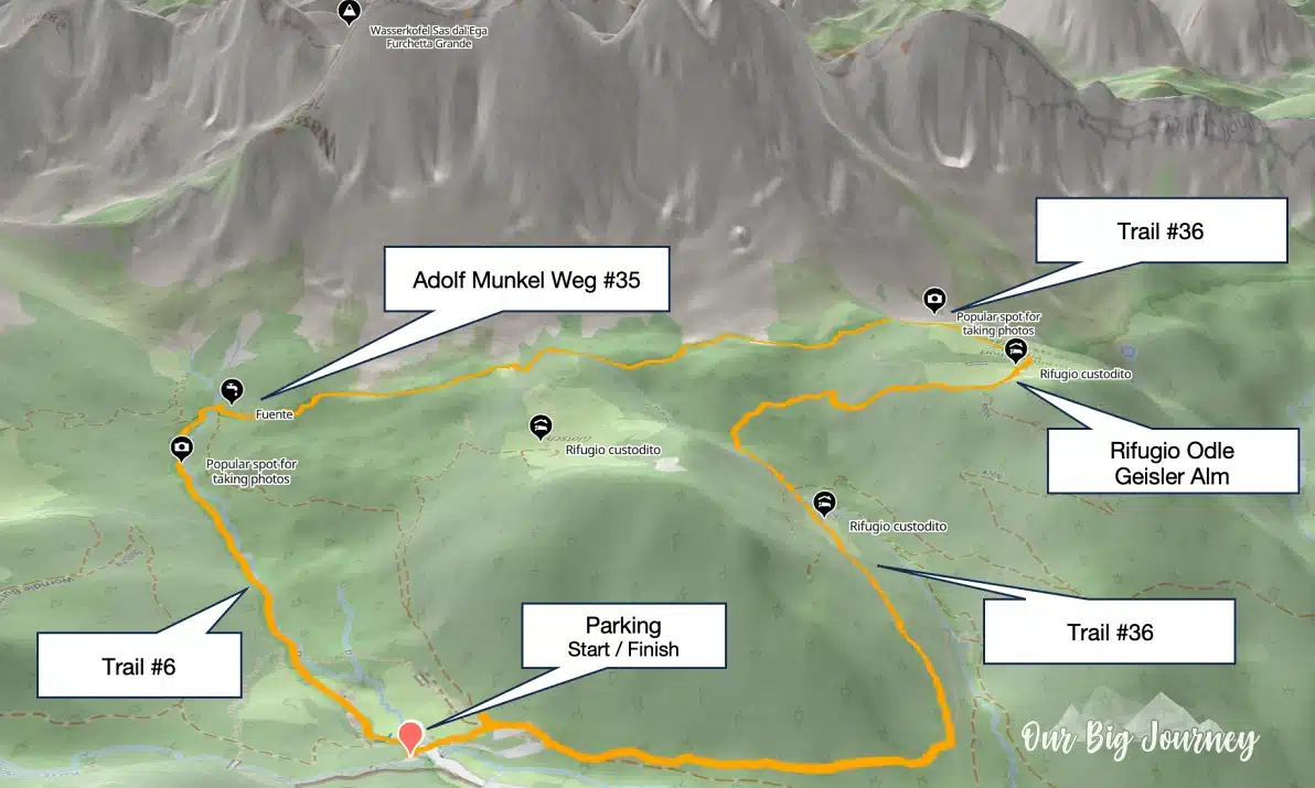 - Photographers: There are multiple good spots for photography but GeislerAlm (also known as Rifugio delle Odle) offers breathtaking views. The best stop of the hike.