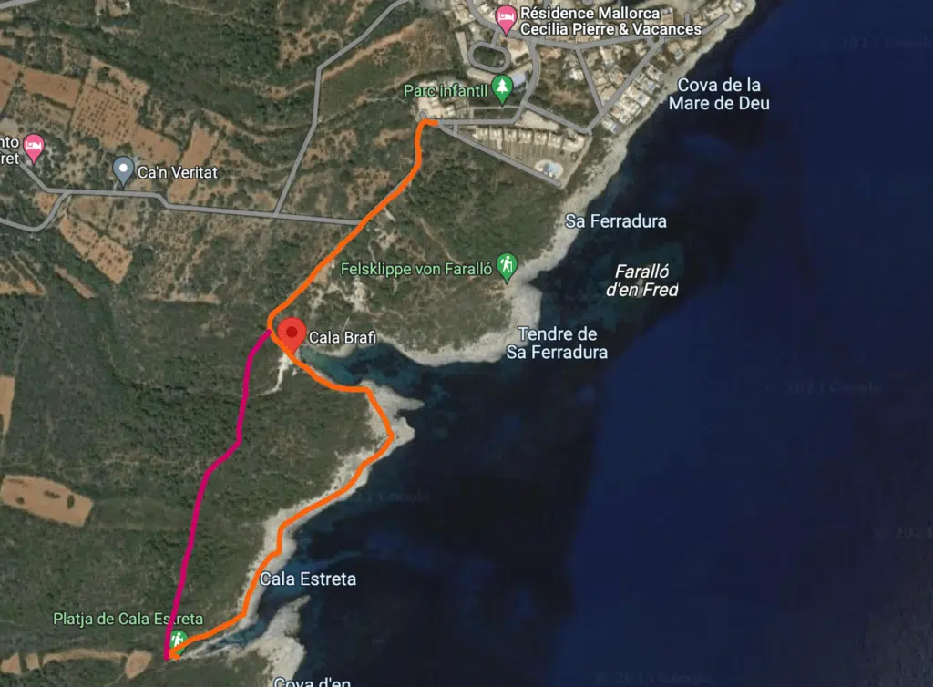 Both options take 20-25 mins and both lead you to Cala Estreta. The good thing about the second option (coastal walk) is that the views of the cala are way better. In my opinion, a circular loop (returning through the bush) would be the best option.