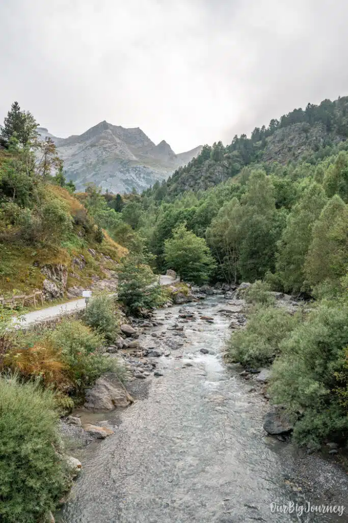 After leaving Gavarnie, the trail follows a wide valley path along a river. This section is gentle and almost feels like a simple walk, which is perfect for kids. You’ll find open meadows, grazing horses, and the massive cliffs slowly rising ahead.