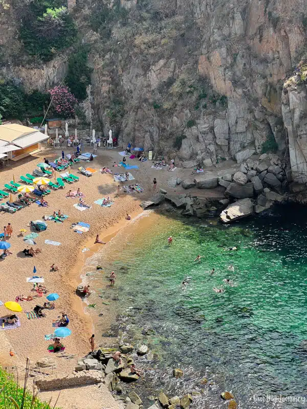 We passed by Tossa de Mar’s main beach (Platja Gran), which sits right outside the old town and is the easiest one to access — it’s wide, sandy, and popular with day-trippers. But if you have a bit more time, walking a few minutes through the old town brings you to Cala Es Codolar, a smaller, tucked-away spot that feels quieter and more atmospheric with the medieval walls rising above the cove.