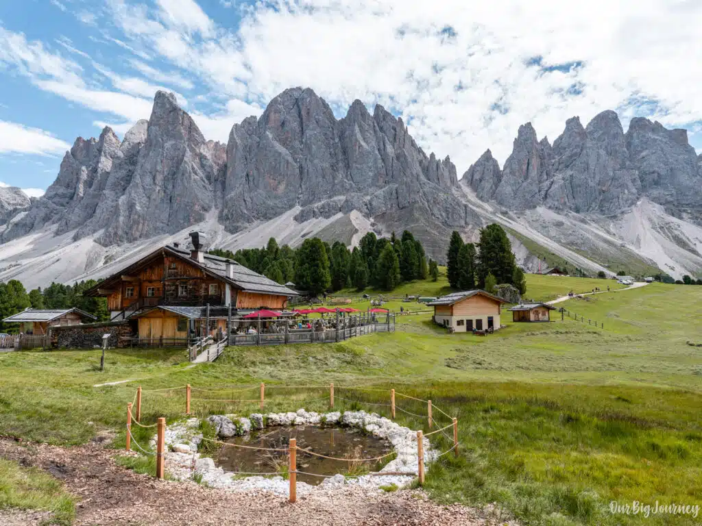Arguably the most family-friendly valley. It offers countless lift-accessible viewpoints, beautiful grassy meadows, and some of the best easy hikes in the Dolomites. We can’t recommend a proper family friendly hotel because we stayed at Vinumhotel Feldthurnerhof in Feldthurns province and loved this hospitality, the hotel itself, and the food and wine.