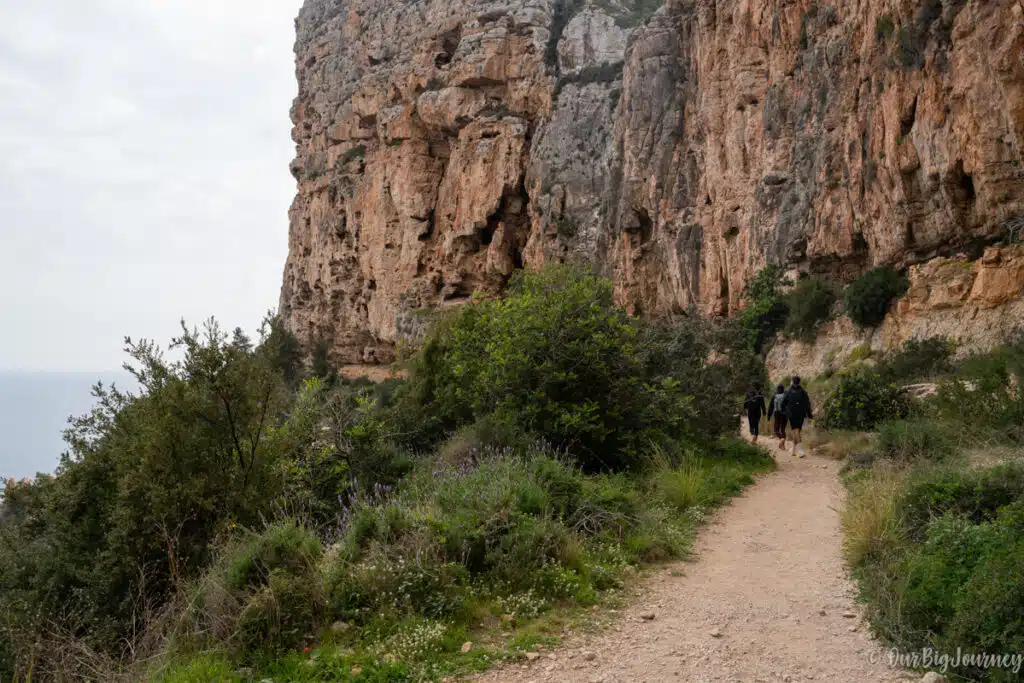 Once you have done one, two or the three walls… you have to come back the same way! Anyway, we retraced our steps in the path to head to the last part of the walk and get to Cala Llebeig. Before starting our last part, we had lunch at the Cala Moraig Lookout, an area that has some tables and good views for a stop.
