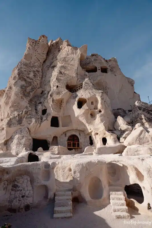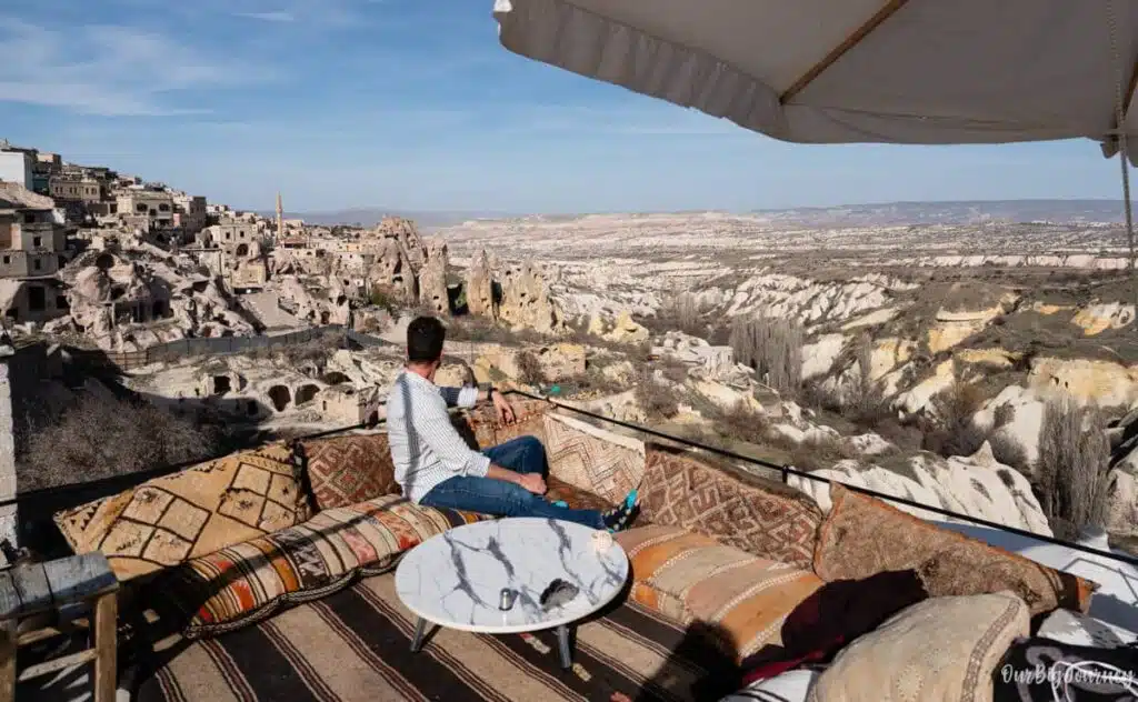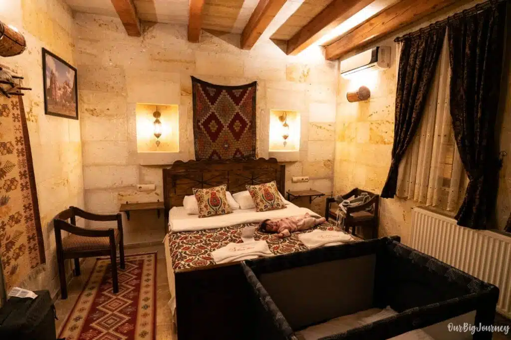 Note that I make a differentiation here, because in Cappadocia there are two types of hotel. Many of them say “Cave” in Booking or other platforms, when they should say stone hotels. Stone hotel is a hotel made WITH stones coming from the rock formations, and cave hotels are those that are actually carved IN the rock formation. It’s something we learned there.