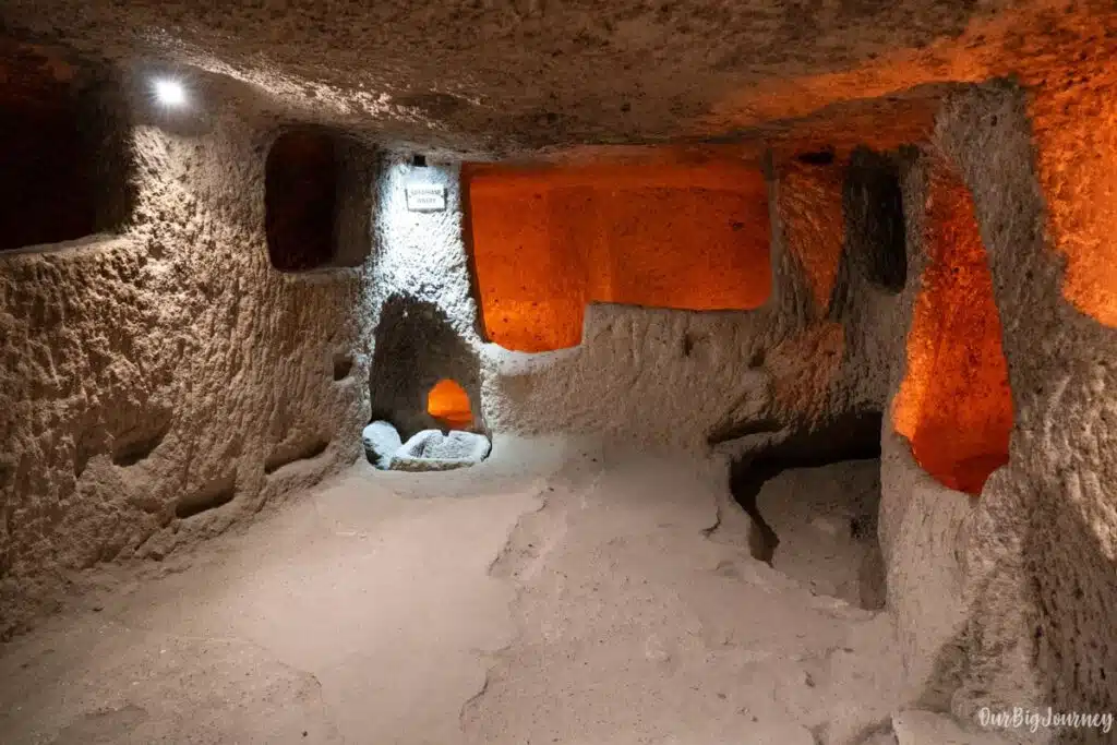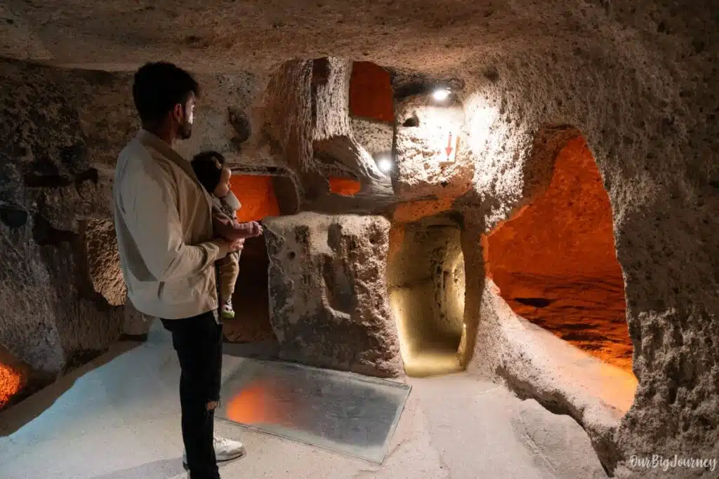 Kaymakli is smaller than Derinkiyu, but it also has bigger rooms and tunnels (thank god we went for the “easy” one). There is a lot to know about these underground cities and we recommend getting a guide at the entrance or online. It was 55-60 € for approx. 1 hour of visit. We didn’t know that the cities were that big and didn’t get a guide at Kaymakli.