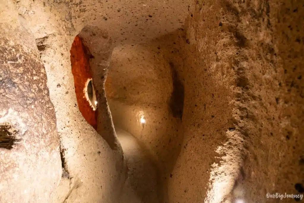 But if you think the carved coves are interesting… The underground cities are really worth the trip to Kaymakli or Derinkuyu. These two cities have huge underground tunnels with 5 or more levels underneath, rooms to storage food, sleep, and even had animals! These crazy structures hosted more than 3.000 people living inside, to be protected from incursions.