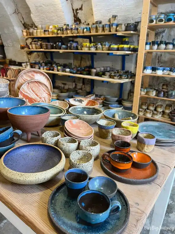 The thing is that only few places are real workshops and prepare handmade elements! By few we mean 5 or 6 in the town. The majority of stores sell cheap industrial pottery from big factories. We found this information thanks to xx. He and his sister offer pottery workshops and have very nice store that breathes quality and good taste. He showed us how he makes glasses, his utensils and the oven where he cooks. We bought two glasses that we love for our coffee ☕️.
