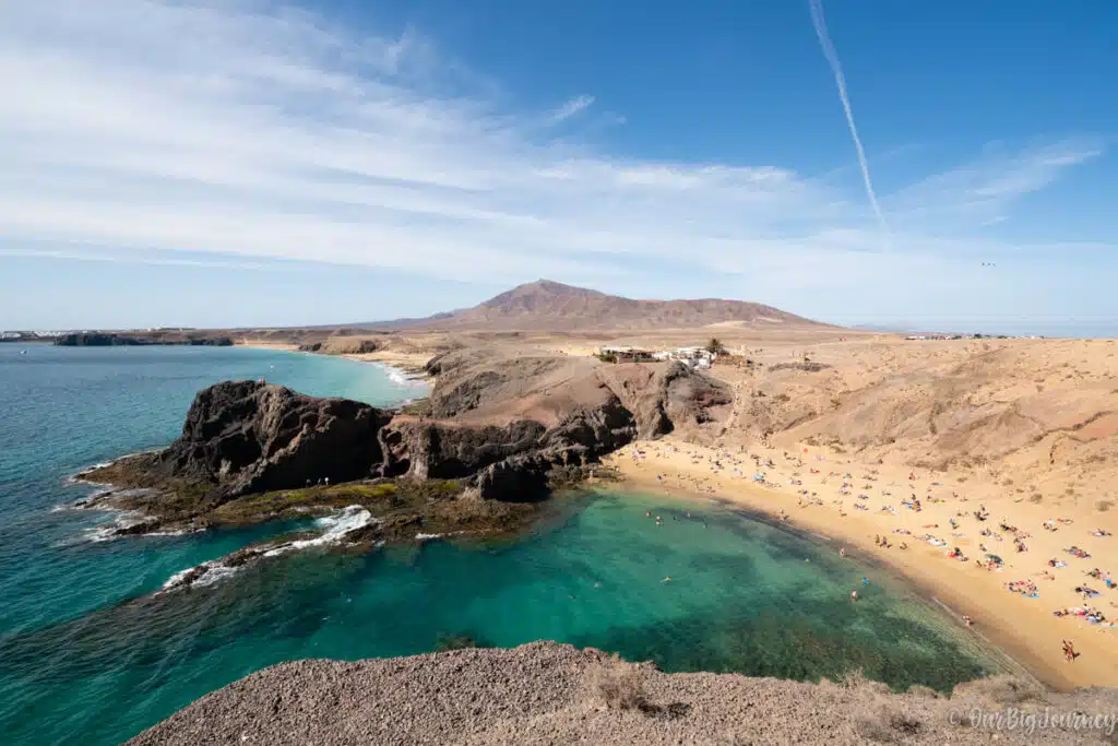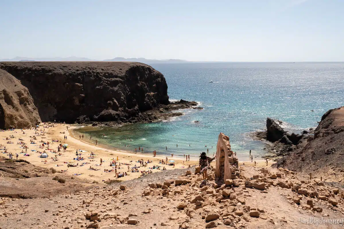 Since the beach is a bit isolated, is not so crowded, and the views from the top of the lookout are stunning. Definitely you should spend a couple of hours here. Getting here takes around 50 min from Arrecife.