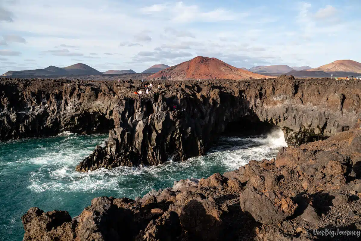 A must stop in a What to do in Lanzarote list, is a visit to Los Hervideros (the boilers). It’s hard to explain the concept but imagine abrupt volcanic coves with holes where the waves come in and out, and make huge noises with the splashes.