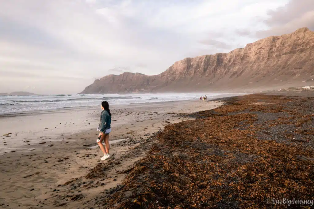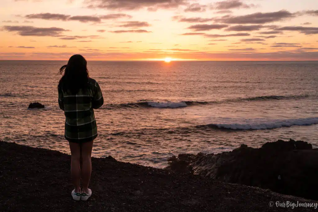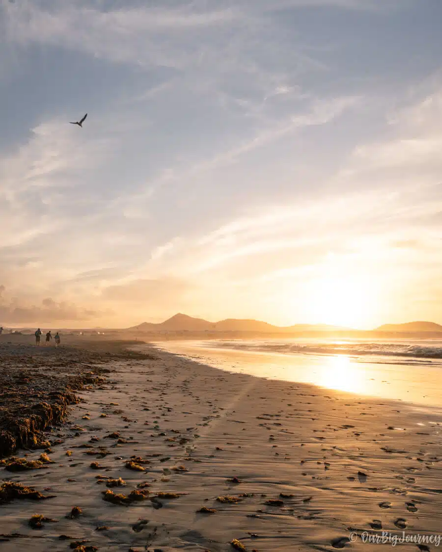 Playa de Famara is probably the best beach for sunset photos in Lanzarote. It’s a long beach where the mountain meets the ocean and the atmosphere is quite relaxing.