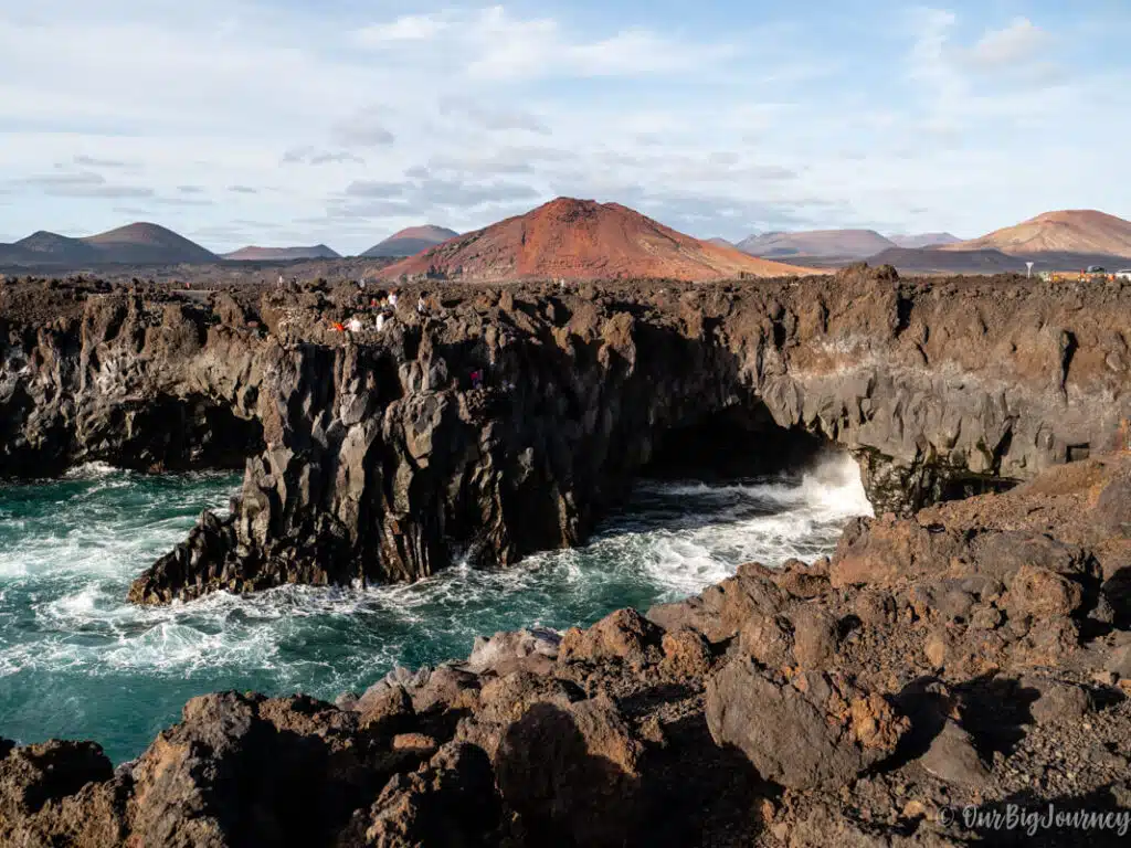 A must stop in a What to do in Lanzarote list, is a visit to Los Hervideros (the boilers). It’s hard to explain the concept but imagine abrupt volcanic coves with holes where the waves come in and out, and make huge noises with the splashes.