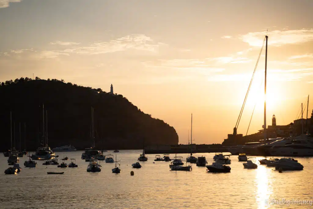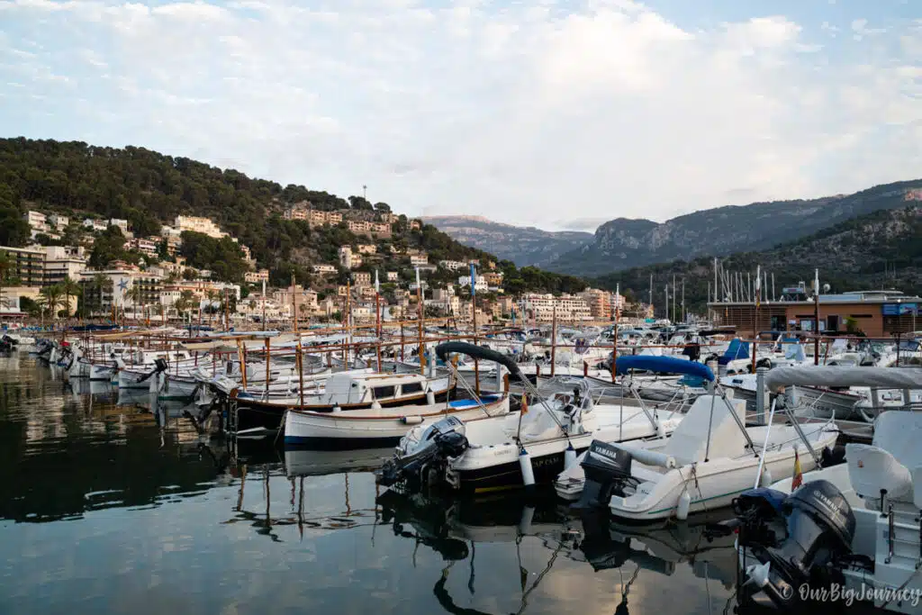 If you take the tram or a taxi to Puerto de Sóller, you’ll be (for us) in the cutest port in Mallorca. Puerto de Sóller is a tiny town around a shell shape beach, that has lots of restaurants along a nice promenade.